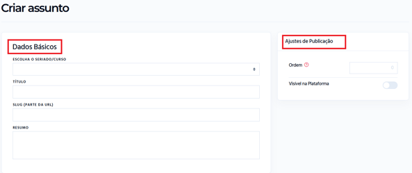 👉 Ao acessar a página, uma nova aba chamada “Criar Assunto” ficará disponível.