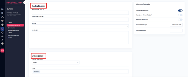 Como criar e gerenciar Conteúdos de Cursos