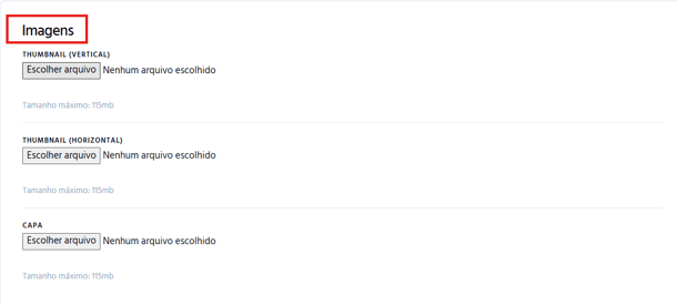 Thumbnail Horizontal: Máximo 115 MB | Dimensões 640x360 px | Formato JPG ou PNG.