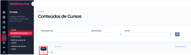 Acesse Cursos > Conteúdo de Cursos.