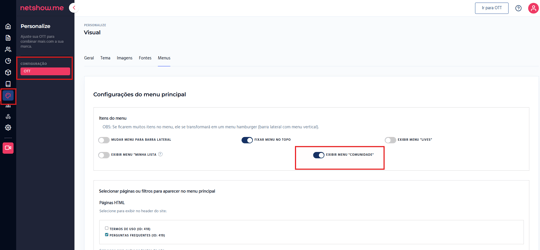 Diferente de outros módulos, a ativação visual da Comunidade no menu principal deve ser feita pelo caminho de personalização: