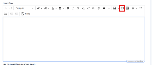 No editor de Conteúdo, clique no ícone Incorporar elemento de mídia.