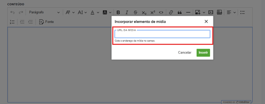 Será aberta uma janela com o campo URL da mídia.