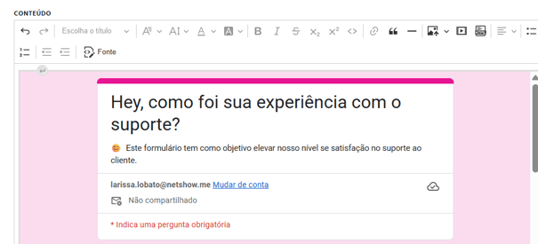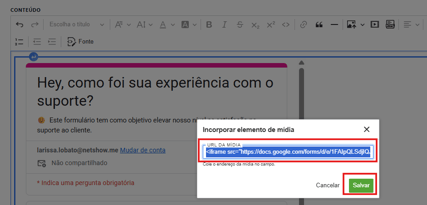 Como inserir um Forms do Google Drive em um Conteúdo