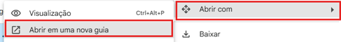 Clique em Abrir com > Abrir em uma nova guia, conforme indicado na imagem.