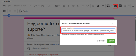 Cole o código de incorporação ou a URL gerada no campo URL da mídia.