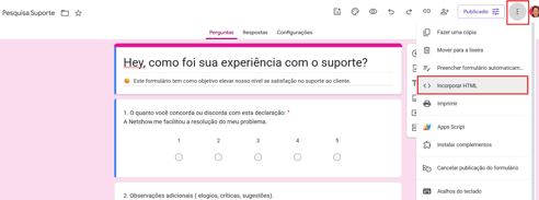 Ainda no formulário, clique nos três pontinhos (⋮) no canto superior direito.