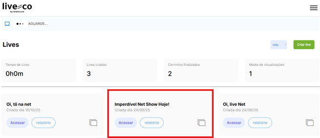 Acesse o painel do perfil “Live-co”.