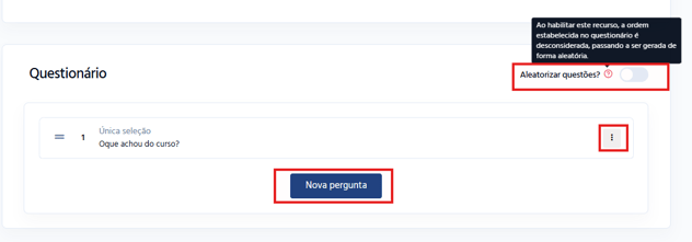 Aleatorizar questão: Ative para que cada usuário receba as perguntas em uma ordem diferente.