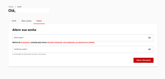 A aba Senha permite que o próprio usuário gerencie sua credencial de acesso à plataforma.