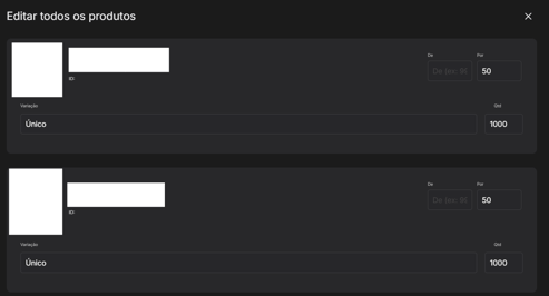 Título da tela: identifica a função da página (“Editar todos os produtos”).