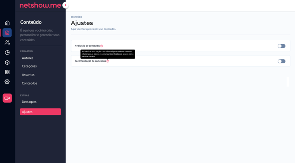 1. A recomendação é habilitada nativamente na plataforma OTT e está disponível somente na versão WEB.