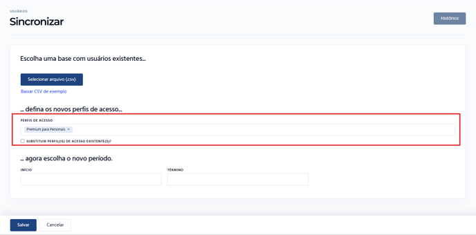 Caso a opção “Substituir perfil(is) de acesso existente(s)?” seja marcada, os perfis atuais do usuário serão removidos e substituídos pelos novos definidos na sincronização.