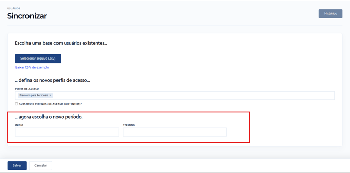 É possível definir um novo período de acesso para os usuários sincronizados, informando: