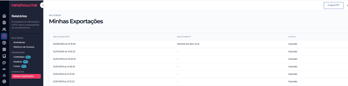 O relatório ficará disponível para download na opção Minhas Exportações, no menu lateral.